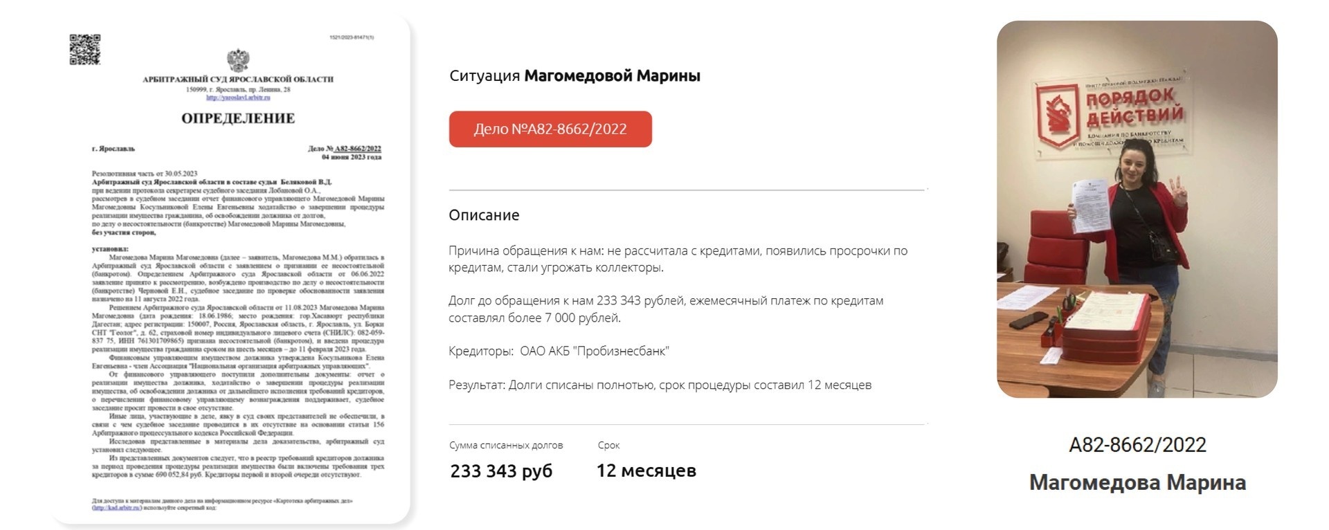 Уточните по рассрочкам, надежные компании готовы работать принимая оплату за результат, каждый платеж идет за выполненный объем работы. Так же ключевой фигурой в процедуре банкротства является арбитражный управляющий. Это юрист с определенной лицензией, специализирующийся именно на сопровождении процедуры банкротства, честная и надежная компания предоставит скан лицензии арбитражного управляющего, документ подтверждающий его участие в СРО а так же ссылку на статистику дел на сайте Федресурса.