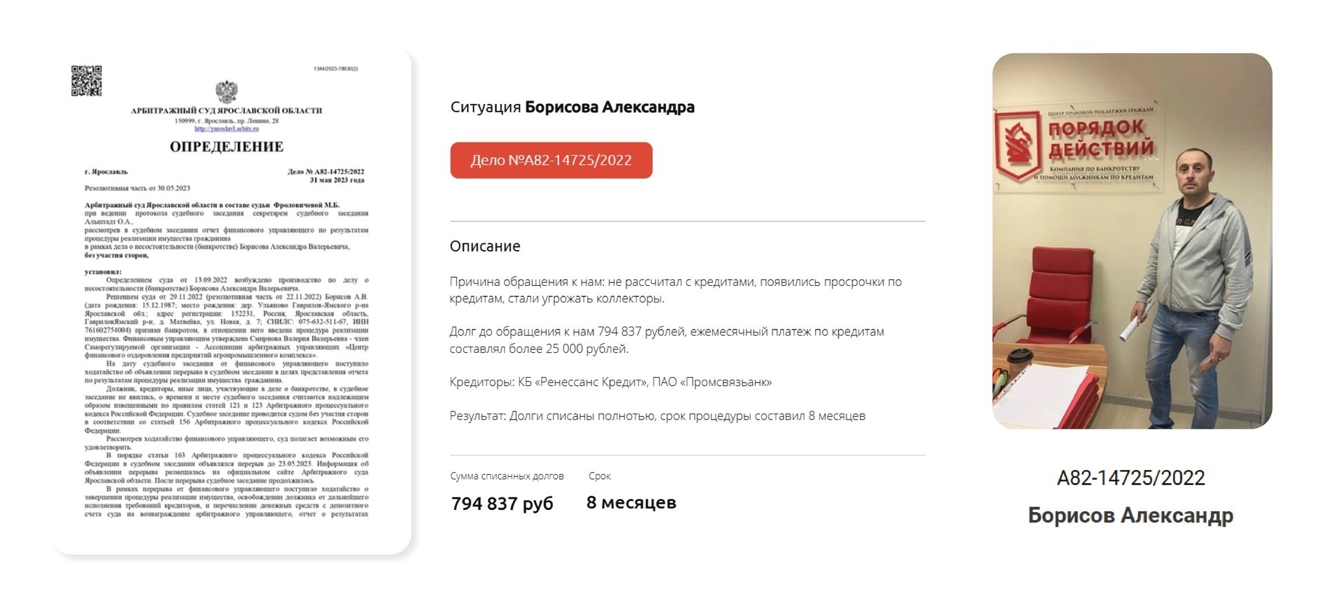 Работаем с 2015 года, более 5000 клиентов, списали более 7 миллиардов рублей.